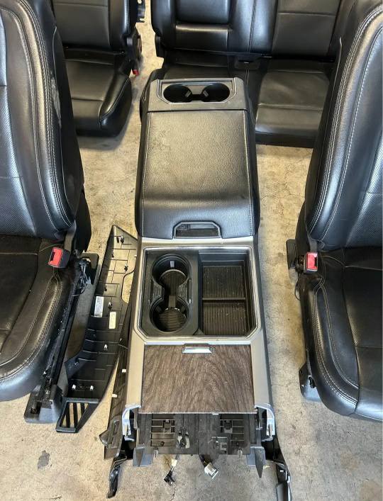 2017-2019 FORD F250,350,450 Black leather interior, Price includes both front and rear seats( front seats are power,heated and cooled.), center console, and all 4 inner door panels and black carpet. This interior was removed from a 2019 f350