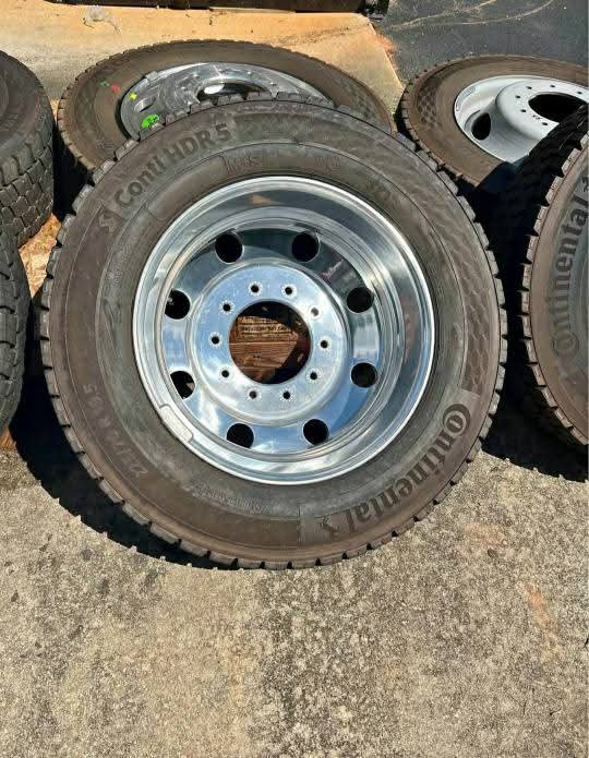 Six Continentals 225 70 19.5 mounted on aluminum stock rims less than 1000 miles. Took off 2025 Ford F450 Limited. Will fit F450/550. Like New