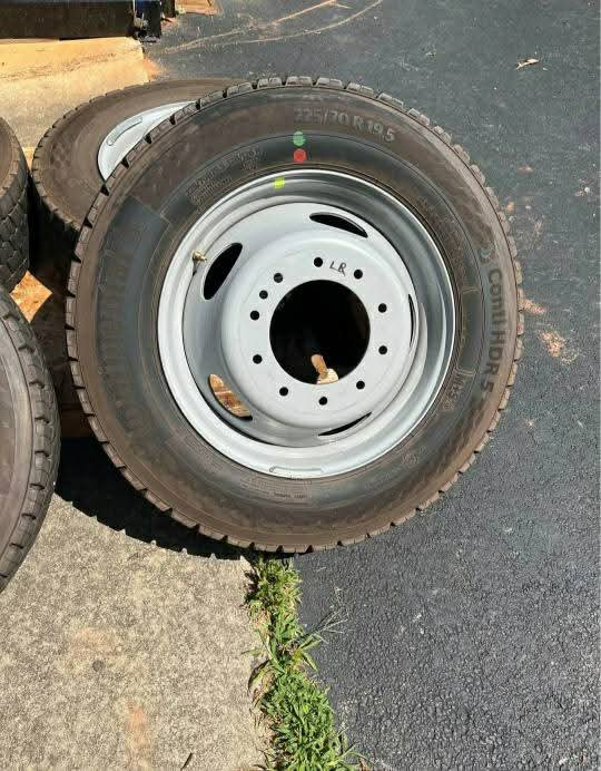 Home / Uncategorized / Six Continentals 225 70 19.5 mounted on aluminum stock rims less than 1000 miles.