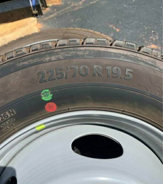 Six Continentals 225 70 19.5 mounted on aluminum stock rims less than 1000 miles.